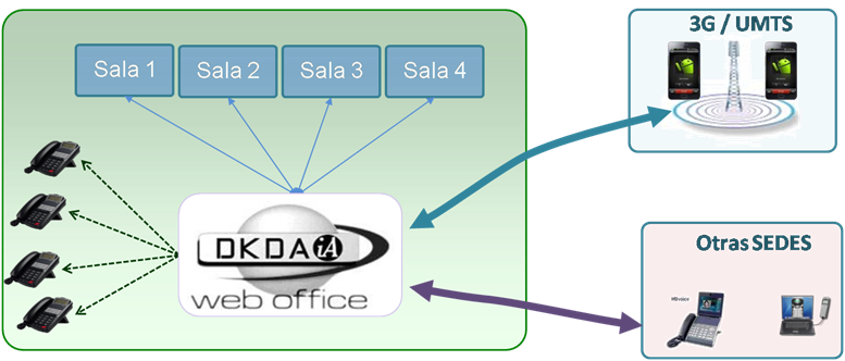 ¿Necesita hablar con diferentes delegaciones al mismo tiempo? ¿Tiene un proyecto que implica a varias áreas?, con DKDA Web Office puede crear salas de conferencia directamente desde su portal Web de usuario, asignar contraseñas de acceso, grabar sus conferencias, acceder directamente desde un número dedicado, desde la operadora automática o transferir una llamada a una sala, nunca ha sido tan fácil comunicarse en grupo.